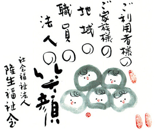 隆生福祉会は、「お役立ちの心」を創業精神として、2000年に設立いたしました。そしてご利用者様、ご家族様、地域の皆様、職員、法人と笑顔が生まれ繋がっていく、この「五つの笑顔」を法人理念といたしました。