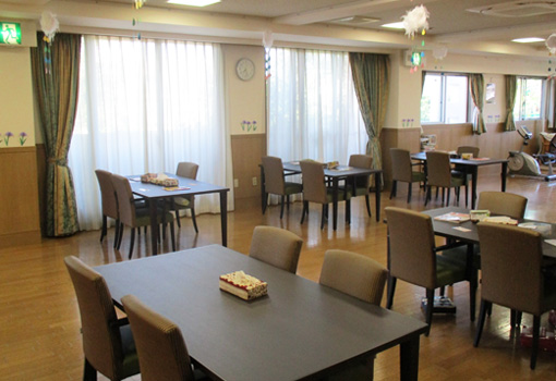 ゆめの昼食は施設内の厨房で手作りしています。味にも見た目にもこだわったお食事をお楽しみいただけます。各地の郷土料理や行事とのコラボレーション等、テーマ性を持った献立作りにも注力しています。