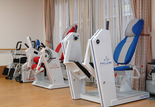 福祉の先進国であるフィンランドより、HUR社製の空圧式リハビリマシンを導入いたしました。0.1kgから負荷調整ができ、高齢者の方にも無理なく効果的にトレーニングしていただけます。また、動き始めから終わりまで負荷が均一になるよう作られているため、関節にも優しいです。