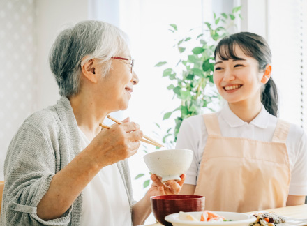 特別養護老人ホーム(介護老人福祉施設)は、要介護3~5の方にご入所いただける施設です。食事や入浴、その他の必要な日常生活上の支援や機能訓練などのサービスを提供します。