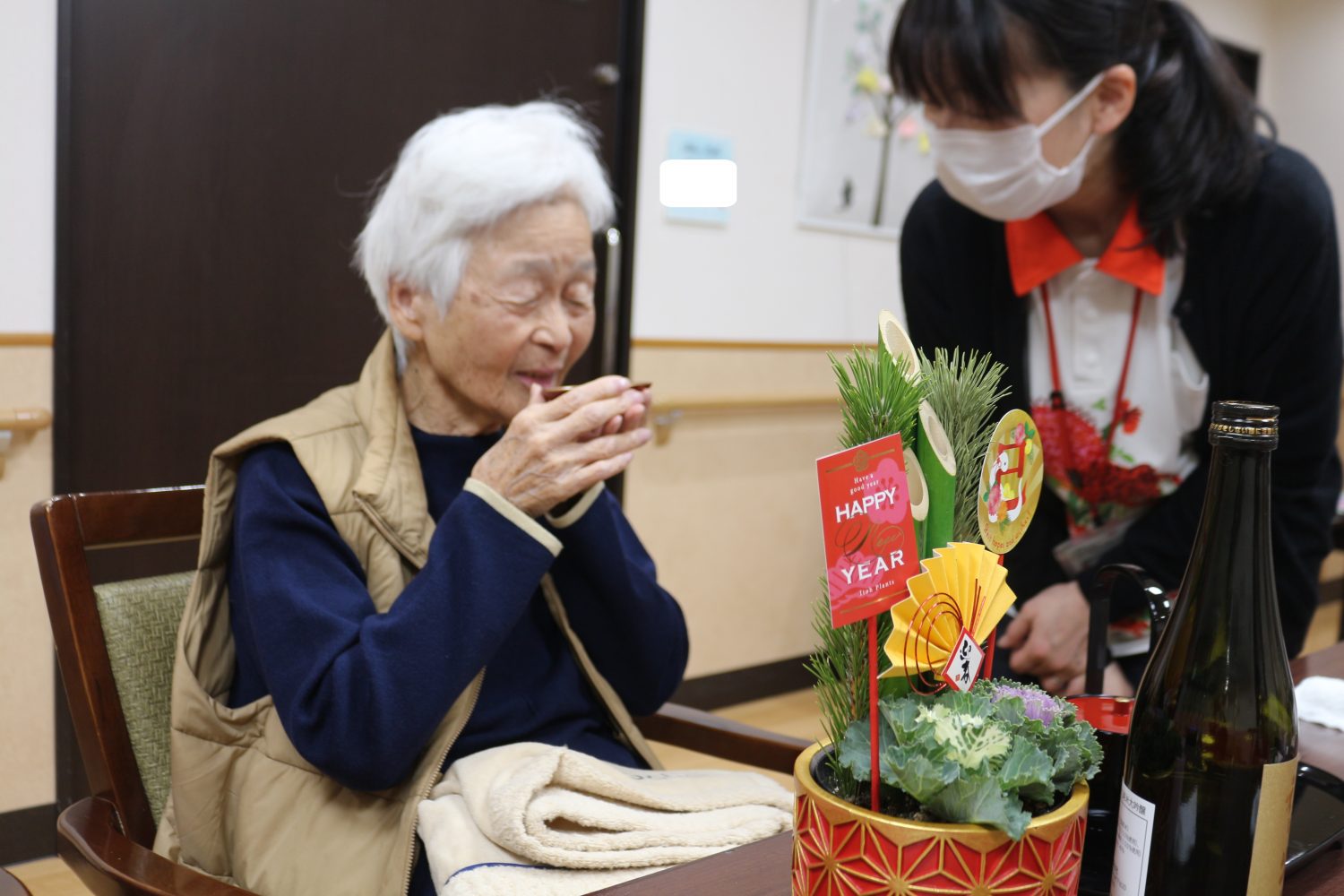 ゆめパラティースでは、ご利用者さまとお屠蘇で新年を迎えることが恒例となりました。
